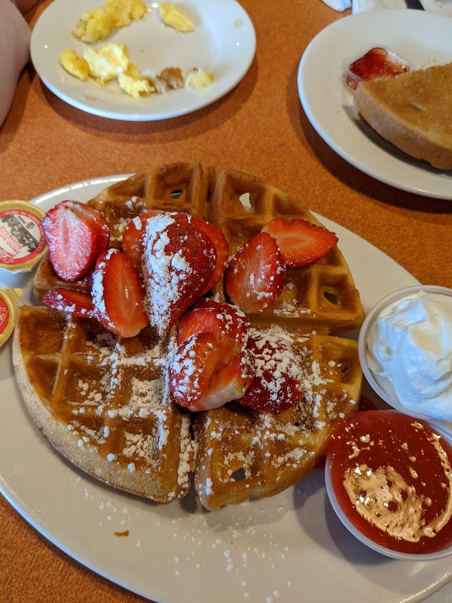 The menu focuses on simple, dependable breakfast classics rather than experimental dishes. Highlights include various special selections like waffles with fruit, French toast specials, and an array of pancakes, including chocolate chip and mini M&M options, which are especially appealing to kids. Beverage choices reflect the breakfast theme, featuring fresh juices, smooth coffee and tea options, and kid-friendly smoothies.